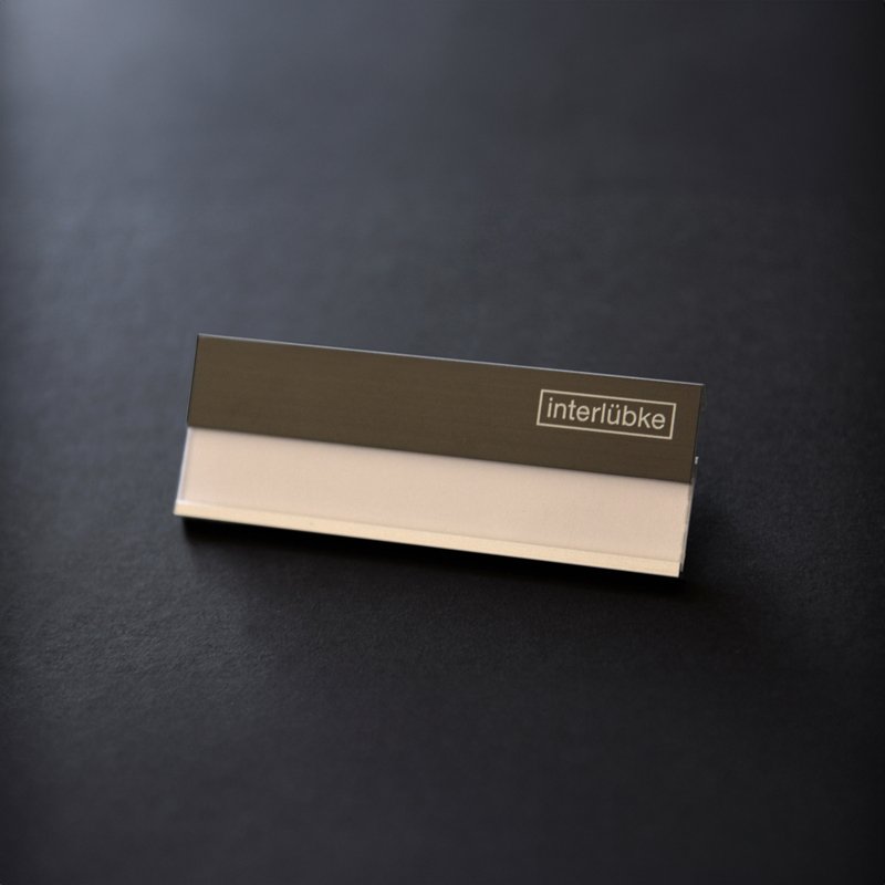 We can offer designs with self-replaceable names. Name badges with printed or engraved lettering look more sophisticated and can be produced either by us or by specialist companies (locksmiths, engravers, etc.) in your area.