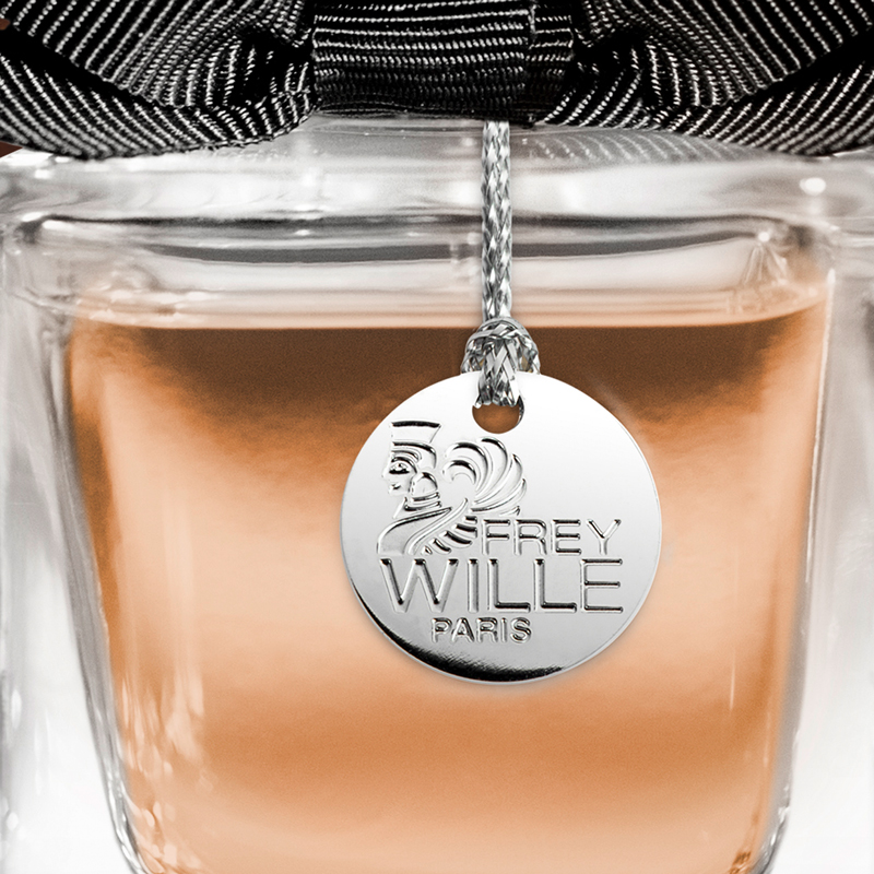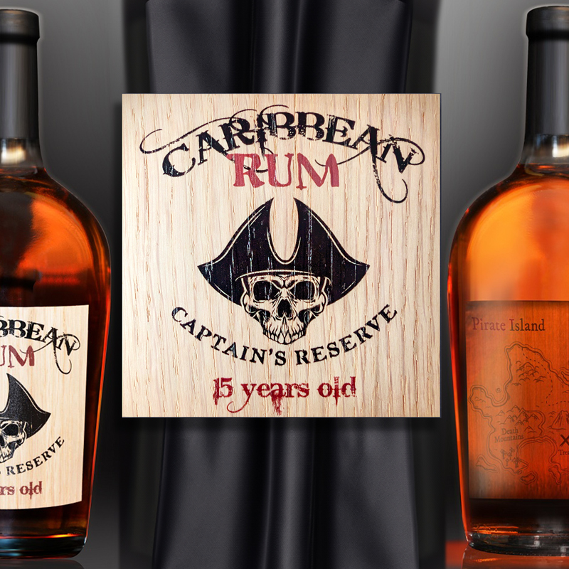 Real wood veneer is another way of using natural materials in high-quality product labelling. The text and logo were burnt