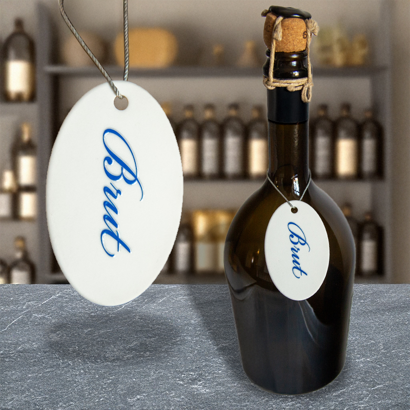 Porcelain elements provide a sustainable basis for labels. With a hole and a cord, high-quality hanging labels can be used