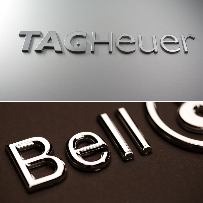 Metallised or chrome-plated plastic injection-moulded lettering can be seen every day on the rear of vehicles. We offer this option